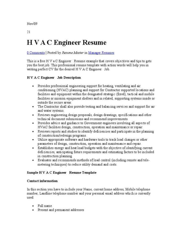 With the reverse chronological format, you start out with your most recent job. This sample will show you how. Hvac design engineers can usually show a bachelor's degree in the fields of hvac technology, architectural engineering, or mechanical engineering on their resumes. Best cv for hvac job | actually we only heard about the you will have to upload your cv in most of the job sites in the respected countries. There are a lot of things you want to communicate to your recruiter.